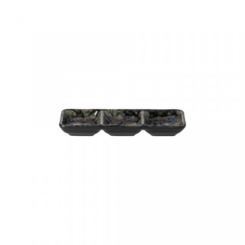 3-Section rectangular tray 18, 6-7/8" x 2-5/8" x H7/8", 1 3/8 fl oz, oven safe, microwave safe, dishwasher safe, freezer safe, fine stoneware, Roda, Iris, (minimum = case quantity) (2 per case)