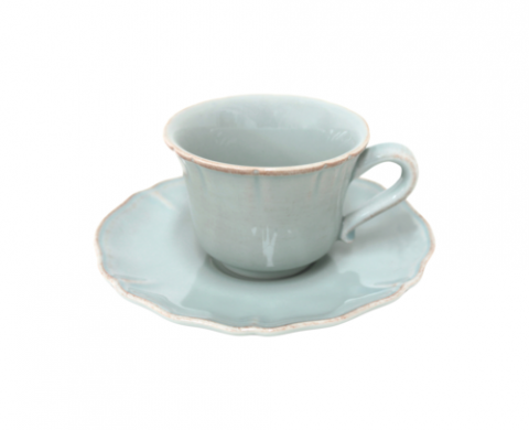 Tea Cup And Saucer, 6-5/8"W x 2-7/8"H, 7-1/2 fl oz, oven safe, microwave safe, dishwasher safe, freezer safe, fine stoneware, Alentejo, turquoise, (minimum = case quantity) (6 per case) (SETS UNAVAILABLE - Must order individual components: SC121-TRQ - TP171-TRQ)