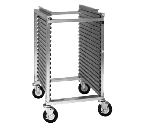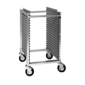 Mobile Work Stand, self contained work center/station for small appliances, open top model has provision for holding a pan & cutting board; outrigger adapters allow for adding one pan on each side, holds (18) 18" x 26" pans, 1-1/2" centers, aluminum frame, NSF