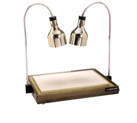 Carving Station, countertop, (2) adjustable arm, infra red lamps mounted to temperature controlled base, recessed base catches drippings, rubber compound cutting board, sneeze guard, NSF