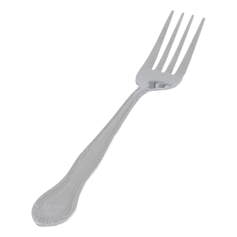 Dinner Fork, 7-1/4", scrolled motif pattern, bright vibro finish, heavy weight, 18/0 stainless steel, Belinda
