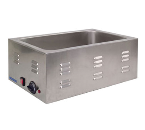 Food Warmer, 21-1/4" x 13-3/8" x 9-1/2", 6-7/8" deep inner well, holds (1) 4-1/2" deep full size pan, electric, countertop, wet application only, 1 piece drawn water well, water level indicators, lighted on/off switch, infinite temperature control, heating indicator light, fully insulated bottom & sides, 18/8 stainless steel body, 10 gauge wire, 120v/60/1-ph, 1200 watts, 10amp, UL