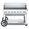 Mobile Outdoor Charbroiler, LP gas, 46" x 21" grill area, 7 burners, 304 stainless steel construction, stainless steel grill, radiants, lighter tube (pilot), water pan, includes 30" wind guards, hose & regulator (Single Inlet NGH05 gas hose included; use this model with 50 lb. or 100 lb. LP tanks only)