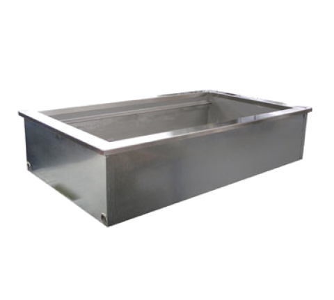 Drop-In Ice Cooled Cold Pan, 69"W x 26" D, (5) 12" x 20" pan size, fit top gasket, removable perforated false bottom, insulated, 1" drain, stainless steel top & interior, galvanized exterior, (68" x 25" cutout required), NSF