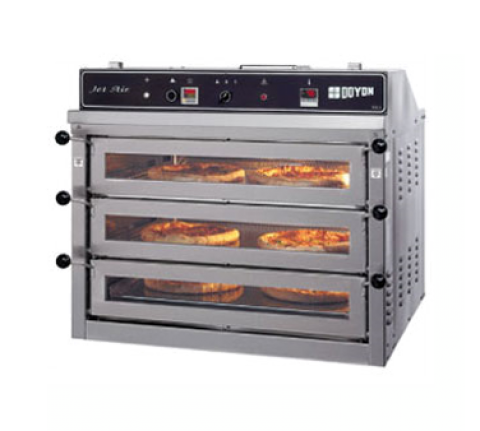 Jet Air Counter Top Pizza Oven, Gas, 3 decks, each deck 30"w x 21"d x 4-3/4", capacity (3) 18" dia. pizzas, full view glass doors, interior lights, stainless steel interior & exterior, 70,000 BTU, 3/4 hp, cETLus, NSF