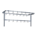 Pot Rack, table mount, 64"W x 24"D x 14"H, triple-bar design, constructed of 1/4" x 1-1/2" galvanized steel, 1-5/8" tubular supports mounted through undershelf to floor, includes double-prong pot hooks, NSF (price when purchased separately for existing table)