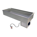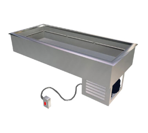 Drop-In Cold Food Pan, refrigerated, 60-7/8"W x 25-1/2"D x 24"H, accommodates (4) 4" deep 12" x 20" pans, 300 series stainless steel top with overhang & locking tabs, 8" deep 300 series stainless steel interior liner, steel exterior housing, remote mounted on/off switch with stainless steel face plate (2-3/16"W x 4-1/8"H cutout required), air-cooled condensing unit, (3) adapter bars included, 1" brass drain & plug, R448a, cULus, UL EPH Classified (59-1/2"W x 23-3/4"D cutout required for unit)