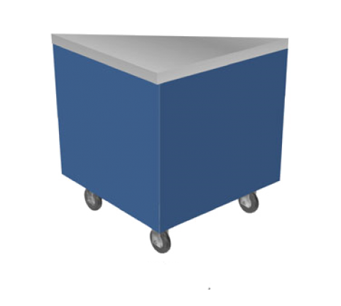 Thurmaduke™ Triangle Unit, 90° corner, mobile, 32" triangle, 36"H, 16ga stainless steel top, 20ga paint grip steel enclosed body, 5" dia. gray poly swivel casters & brakes, NSF