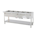 Aerohot Steamtable Wet Bath Unit, 72-3/8"W, gas, (5) pan size open water bath with (1) 27,000 BTU burner with adjustable gas valve control & safety pilot, stainless steel top with 1/2" thick x 7" wide poly carving board, 1" drain & valve, stainless steel open base with undershelf, legs & feet, CSA STAR, UL EPH Classified