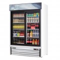 Reach-In Glass Door Merchandiser Refrigerator, two-section, 53-1/8"W, 48.0 cu. ft. capacity, (448) 20 oz. bottle capacity, self-contained bottom mounted refrigeration, (2) sliding glass self-closing doors, (8) epoxy coated wire shelves, height adjustable clips, digital controls with LED display, auto defrost, LED interior lighting with on/off switch, double-pane glass, white coated steel interior & exterior, stainless steel floor, (4) adjustable screw legs, R290 Hydrocarbon refrigerant, 1/2 HP, 115v/60/1-ph, 5.5 amps, cord, NEMA 5-15P, NSF, cETLus, ETL-Sanitation