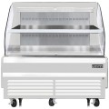 Horizontal Open Display Merchandiser, 60"W x 34-1/4"D x 46"H, 12.3 cu. ft. capacity, self-contained bottom mount refrigeration, front air intake & rear air discharge, LED lighting in canopy & underneath shelves, retractable night curtain, (2) adjustable stainless steel shelves, overheat protection alarm, stainless steel interior, white exterior, 5" front swivel casters with locks & leg stabilizers, R290 Hydrocarbon refrigerant, (2) 1/2 HP, 115v/60/1-ph, 11 amps, cord, NEMA 5-20P, ETL-Sanitation, cETLus, NSF