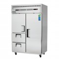 Reach-In Dual Temperature Refrigerator/Freezer Combo, two-section, 49-5/8"W, 22.0 (R) & 22.0 (F) cu. ft. capacity, self-contained top mounted refrigeration, (1) solid hinged self-closing door (locking) with (3) epoxy coated wire shelves, (1) solid hinged self-closing half-door (locking) with (1) epoxy coated wire shelf, (2) drawers with (1) epoxy coated partition shelf, height adjustable clips, digital controls with LED display, auto defrost, LED interior lighting, pressure relief port, stainless steel interior, stainless steel sides, galvanized steel top, bottom & rear, (4) 5" swivel casters (2 locking), R290 Hydrocarbon refrigerant, 1/4 HP (R) & 1/2 HP (F), 115v/60/1-ph, 9.0 amps, cord, NEMA 5-15P, NSF, cETLus, ETL-Sanitation