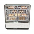 Italian Glass Non-Refrigerated Display Case, self-service, floor standing, 36"W x 33"D x 44"H, (2) tiers of adjustable tempered glass shelves, removable tempered sliding rear glass doors, 3500K LED top light & shelf lights, stainless steel interior, powder coated steel base, rear air intake & discharge, night curtain, adjustable leg levelers, UL, UL EPH Classified, Made in USA