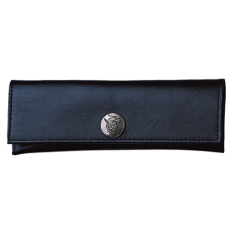 Corkscrew Pouch, 6-7/8"W x 2-3/8"H, grape design brass button, leather, black (bulk pack)