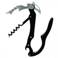 Bacchus™ Champagne/Wine Opener, 5-1/2" overall length, black spiral, serrated blade, two-step boot lever, bottle cap opener, screw tops, anodized aluminum exterior, black (factory box)