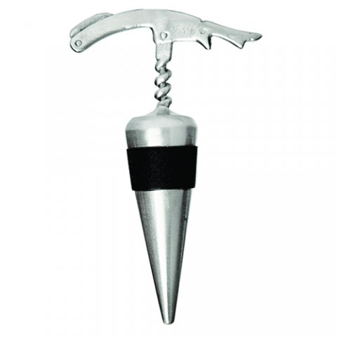 Wine Bottle Stopper, 3-1/2"H, rubber sealing sleeve, waiter's corkscrew top design, stainless steel (factory box)