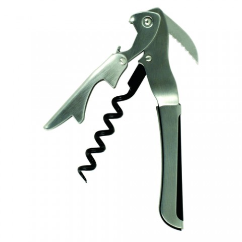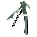 Gulliver Waiter's Corkscrew, two-step, 4-3/4" overall length, curved, non-stick spiral, serrated blade, 1-1/8" extender arm, double lever, bottle cap opener, black inset, stainless steel, Made in Italy (bulk pack)