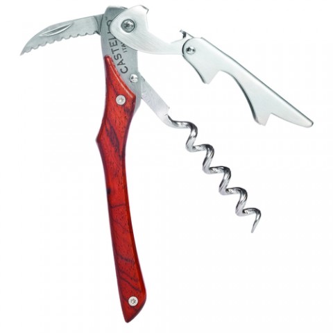 Castello™ Waiter's Corkscrew, two-step, 4-3/4" overall length, spiral, serrated blade, cocobolo wood handle, stainless steel, includes: silver gift box, Made in Italy (factory box)