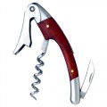 Waiter's Corkscrew, 4-1/4" overall length, curved, spiral, straight blade, burgundy wood inset handle, stainless steel (factory box)