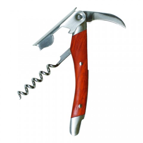 Waiter's Corkscrew, 4-1/4" overall length, spiral, straight blade, rosewood inset handle, stainless steel (factory box)