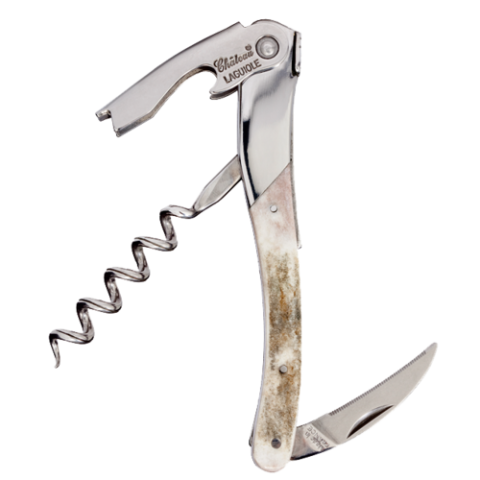 Chateau Laguiole® Waiter's Corkscrew, 4-1/2"L, spiral, serrated blade, reindeer wood handle, includes: blue leather pouch, (Andreas Larsson) (factory box)