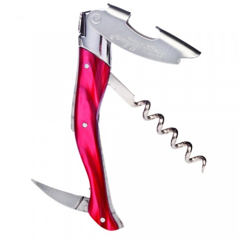 Laguiole Millesime®Waiter's Corkscrew, 4-3/4" overall length, spiral, serrated blade, acrylic handle, red marble, Handmade in France (factory box)