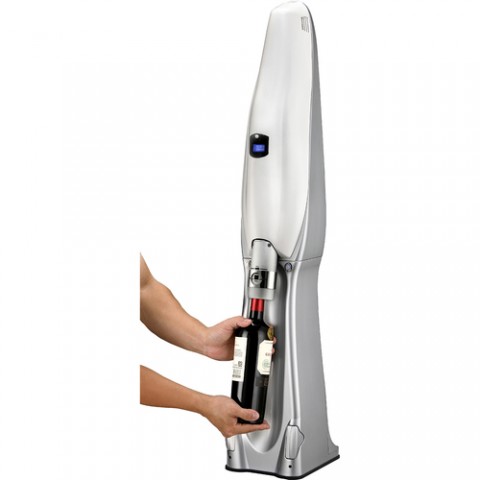 ElectroPull II™ Professional Uncorking Machine, 7-1/4”L x 7”W x 39-3/4”H, adjustable extraction, extracts 500 corks per hour, carbon steel blade, gray handle, foil cutter, built-in stand, 200 watt, 110V-240V AC, 50-60Hz