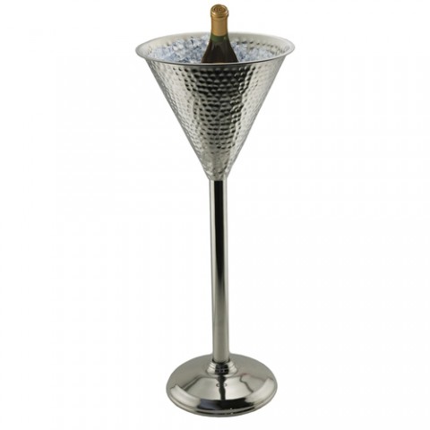 Kone Cooler Bucket, 10-3/4” dia. x 26-7/8”H, single-bottle, stand with weighted base, stainless steel, hammered bucket