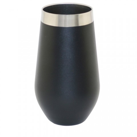 Apollo Bev-Ware™ Glass, 16 oz., stemless, triple-wall, vacuum sealed, 18/8 stainless steel, textured black finish