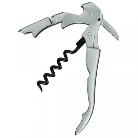 Duo-Lever™ Waiter's Corkscrew, 4-3/4" overall length, non-stick spiral, stainless steel boot lever & serrated blade, capsule cutter, handle, stainless steel exterior (factory box)