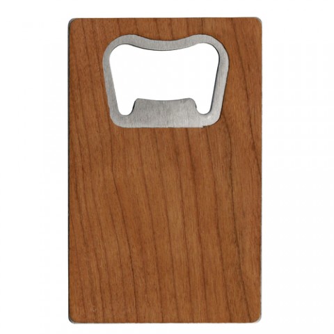 Credit Card Opener, 3-1/2” x 2-1/8”, 2mm thick, stainless steel, cherry wood laminated