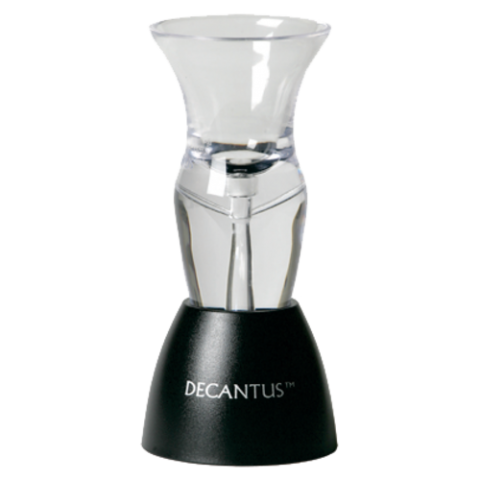 Decantus™ To Go Wine Aerator Set, includes: (1) 5" H slim aerator, (1) plastic table stand, (1) black storage pouch (retail box)