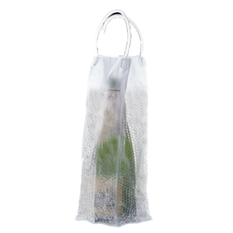 Gel Bead™ Champagne Cooler Bag, (1) bottle capacity, 5-1/2"W (when folded) x 7"H, rectangular, collapsible, freezable gel beads on 4-sides, 4" tubular handles welded, clear (bulk pack)