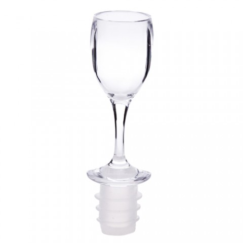 Wine Bottle Stopper, 4"H, wine glass design, top rack dishwasher safe, acrylic top, polypropylene stopper base, clear (bulk pack)