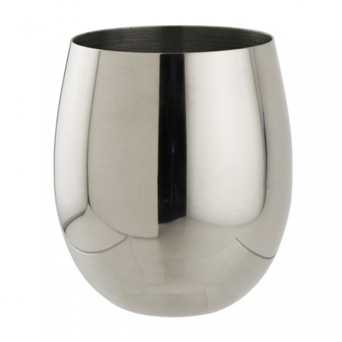 Wine Glass, 12 oz. rim full, 3-1/4" dia. x 3-1/2"H, stemless, 1 mm thick, 18/8 stainless steel, polished