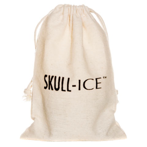 Skull-Ice™ Cube, includes: (2) 1" x 1-1/4" x 2" cubes, skull design, reusable, non-toxic gel interior, dilution-free, stainless steel (8272) and (1) cotton storage bag (bulk pack)