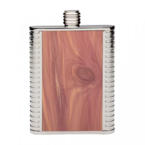 Pocket Flask, 6 oz., 3-3/4"W x 5-1/2"H, screw top, ridged side grips, stainless steel with redwood inlay (factory box)