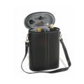 Wine/Champagne Travel Case Set, (2) bottle capacity, 8-1/2"W x 4"D x 14"H, zipper top with handle, shoulder strap, padded partitioned compartment, includes: curved stainless steel corkscrew, cone-top wine stopper & stainless steel drip collar, leatherette, black (factory box)