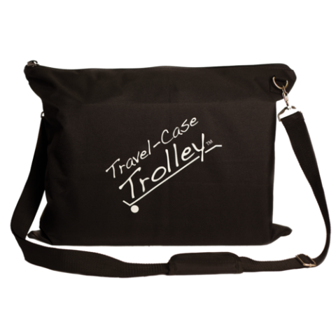 Travel-Case Trolley™ Luggage/Carrier, multi-use, collapsible, 20" x 16" x 3-1/2" (collapsed), zip on sleeve, adjustable pull straps, tag, (2) rear wheels fixed, (2) front wheels swivel, polyester, black (retail box)