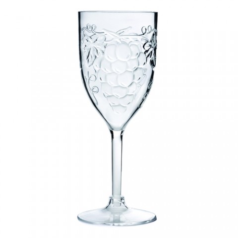 Wine Glass, 10 oz., 3-1/4" dia. x 7-3/4"H, round, with stem, grape cluster design, BPA free, acrylic, frosted (bulk pack)