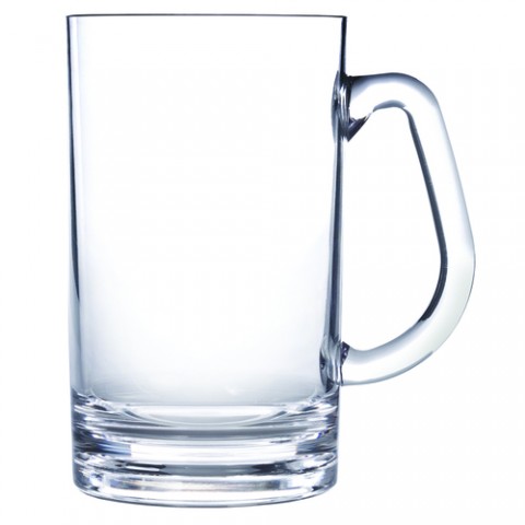 Beer Mug Glass, small, 20 oz., 3-3/8" dia. x 5-5/8"H, round, stemless, with handle, BPA free, acrylic, clear (bulk pack)