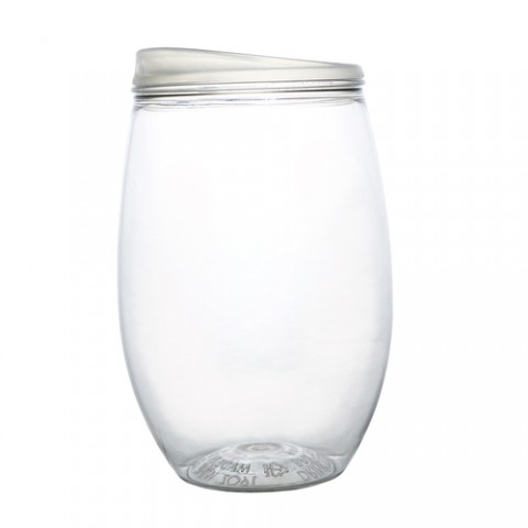 Wine Tumbler, 16 oz., 2-5/8” dia. x 4-5/8”H, stemless, lidded, PET plastic, BPA free, Made in USA