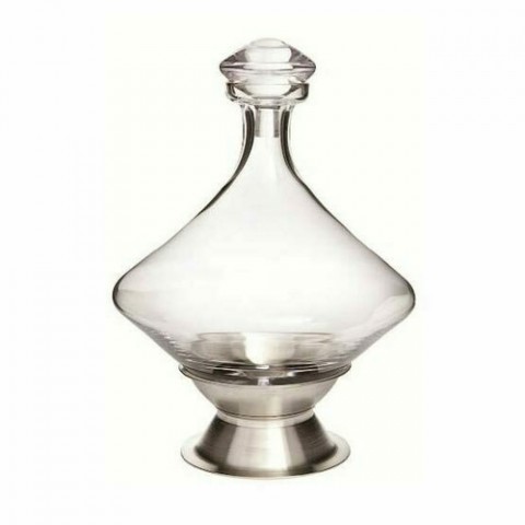 Orbital Decanter, 60 oz., 7-1/2"W x 10-1/2"H, with crystal stopper and brushed stainless steel base, lead-free crystal, Made in Europe (retail box)
