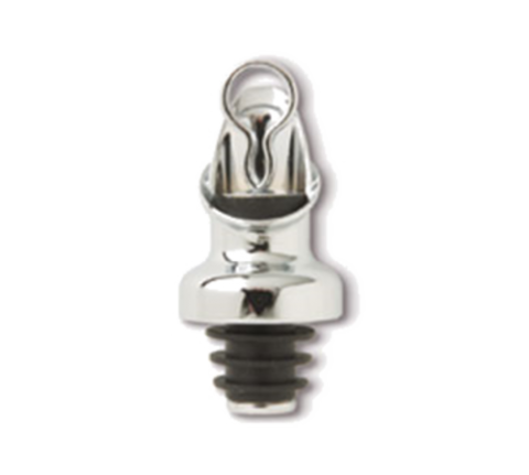 Bottle Pourer & Stopper, 1-1/4" dia. x 2-3/4"H, 3-ring rubber base, chrome plated (premium carded)