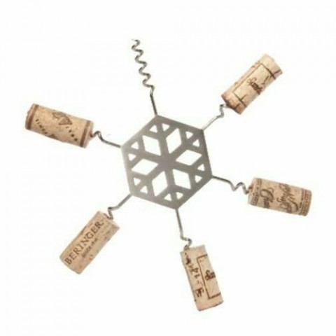 Snowflake Wine Cork Trivet, 6-3/8" dia., snowflake shape, (6) spirals, stainless steel (corks not included), Made in Portugal (retail box)