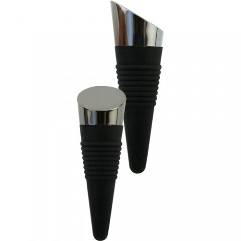 Zocco Bottle Stopper, 1"W x 3-3/4"H, tapered rubber base, metal plated top, specify color