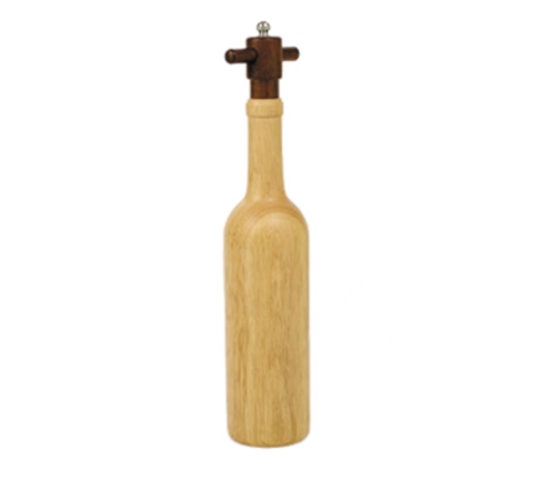 Vintage Pepper Mill, 2-7/8" dia. x 14-3/4" long, Bordeaux bottle shape, stainless steel grinder, wood, clear finish (retail box)