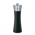 Augsburg Pepper Mill, manual, 2" dia. x 7"H, 6-position dial adjustable from coarse to fine, German ceramic grinder, corrosion free, hand-wash only, beechwood & stainless steel, black stained, Zassenhaus, Made in Germany