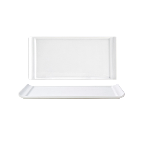 Nouvelle Plate, 8" x 4", rectangular, flat with contoured curved sides, porcelain