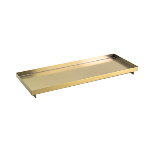 Tray, 12-1/4" x 4-3/4" x 1", rectangle, footed, stainless steel, matte brass finish